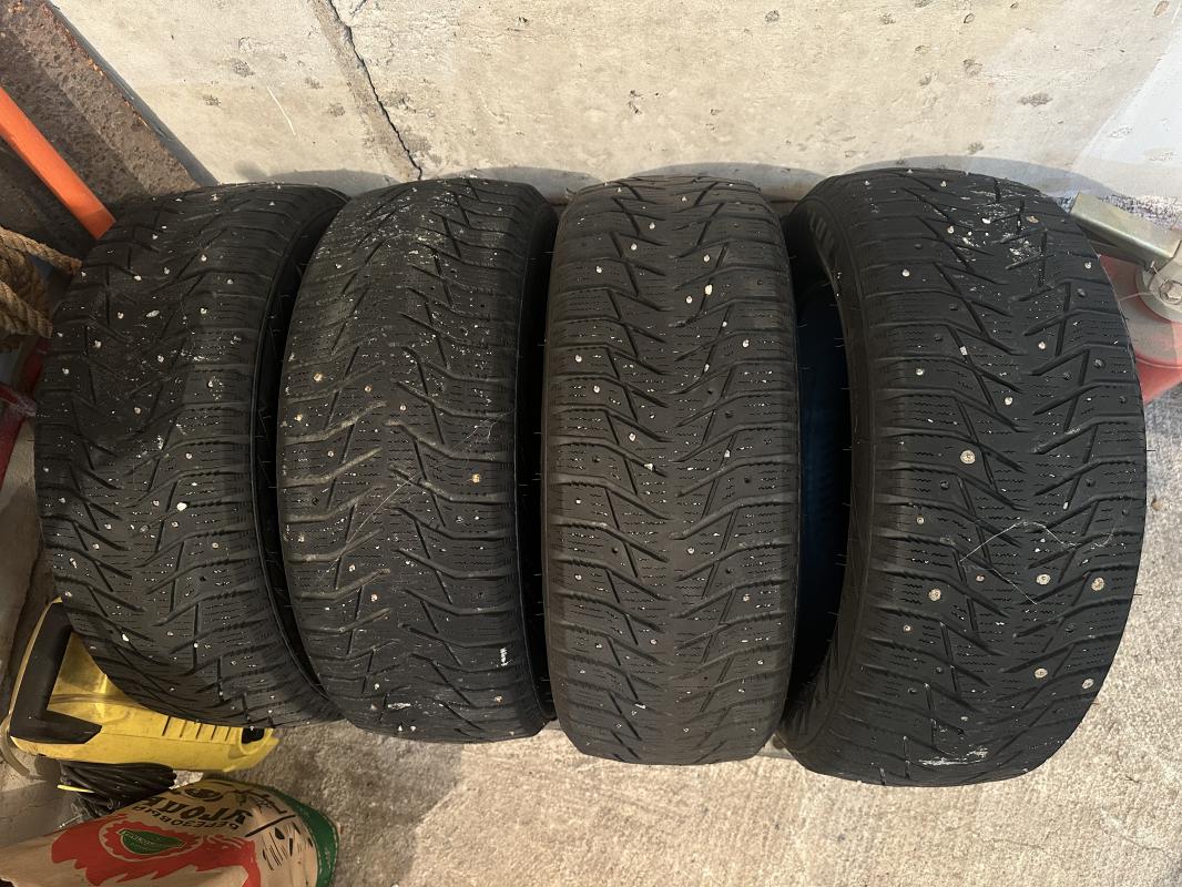 Продам б/у комплект зимних шипованных шин 205/55/r16: три баллона Нокиан Хакка 5, один Сайлун.