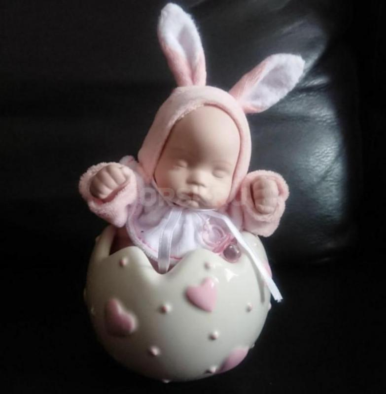 Кукла в керамическом яйце, заводится и играет мелодию, пупс двигается.