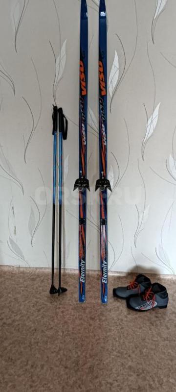 беговые пластиковые лыжи для подростка, длина лыж-1м. 80 см., длина палок 1 м. 25 см., ботинки 37 ра