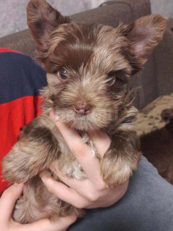 Щенок девочка цветной Йорк окрас шоко мерле.