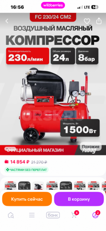 Компрессор Fubag , 24литра.