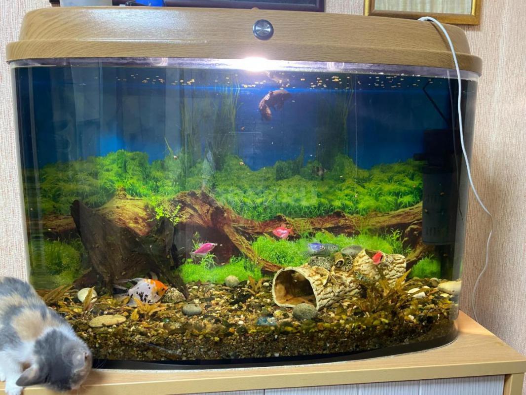 продам аквариум с рыбками, В ОТЛИЧНОМ СОСТОЯНИИ, тумба в подарок ширина аквариума - 33 см, длина 8